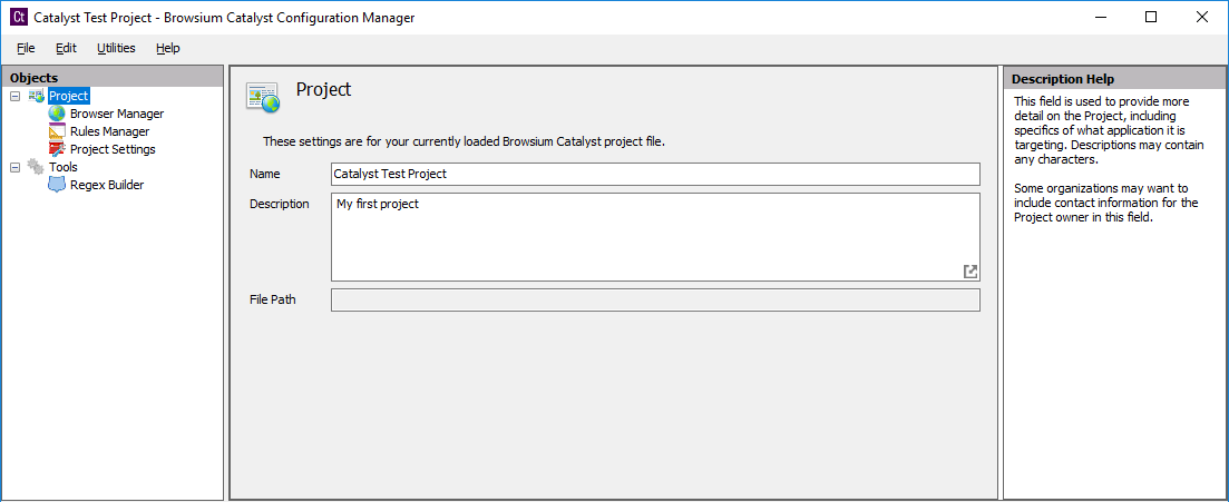 For our Catalyst test project, we don’t need to modify any browsers in the Browser Manager or the Project Settings. We will leave everything at its default value.