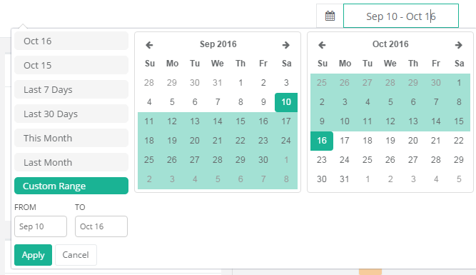 Custom Range Allows the administrator to designate custom start and end dates for the view