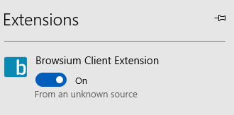 To function properly, the Browsium Client requires browser extensions must be installed and enabled. All supported Web browser extensions are installed during Setup and enabled during first run of the Browsium Client. To ensure proper operation in deployment, the Browsium Client will periodically monitor extensions state and enable them if they become disabled. Installing and enabling extensions often requires open browser windows to be closed.
